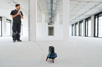 - Точное позиционирование лазерных линий вокруг точек основания перпендикуляра — позиционирование электроприводом с помощью RM 3 Professional (опция), приложения или пульта дистанционного управления, или ручное позиционирование с помощью RM 2 Professional