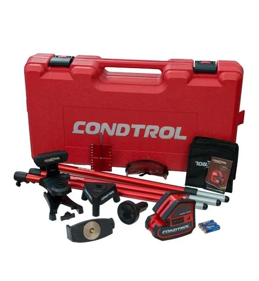 С помощью данного комплекта Вы сможете решить две основные проблемы: качественные инструмент и возможность монтажа данного инструмента. В кейсе находится всё необходимое: лазерный нивелир, чехол, батарейки, штанга и штатив (которые можно собрать из 3-х телескопических колен, треггера, упора), очки для работы с лазером, универсальное крепление, зажим. Данным комплектом предусмотрены все возможные варианты монтажа, который удовлетворит потребности самого взыскательного профессионала. Transformer, входящий в комплект, может собираться как в штатив, так и в телескопическую штангу. лазерный нивелир CONDTROL UniX-2 отличают оригинальный дизайн, яркая горизонтальная и вертикальная линии с широкими углами развертки и обрезиненный ударопрочный корпус. Кроме того, CONDTROL UniX-2 проецирует 2 ортогональные точки отвеса, что делает прибор еще более востребованным для проведения любых видов работ. Встроенный импульсный режим при работе нивелира в паре с приемником излучения обеспечивает устойчивую работу на расстоянии до 100 м.